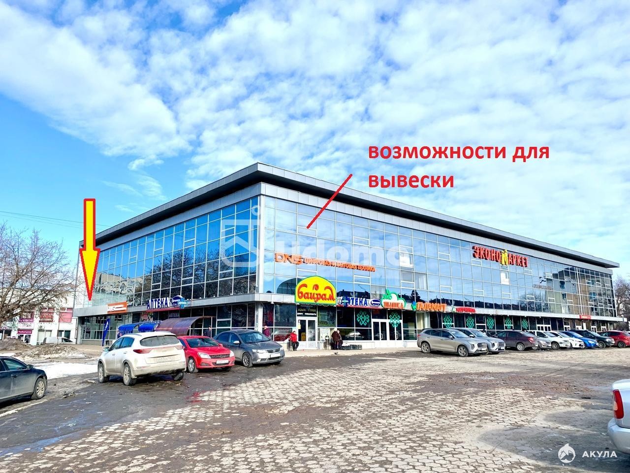 - большая парковка, подъездные пути, великолепные рекламные возможности;