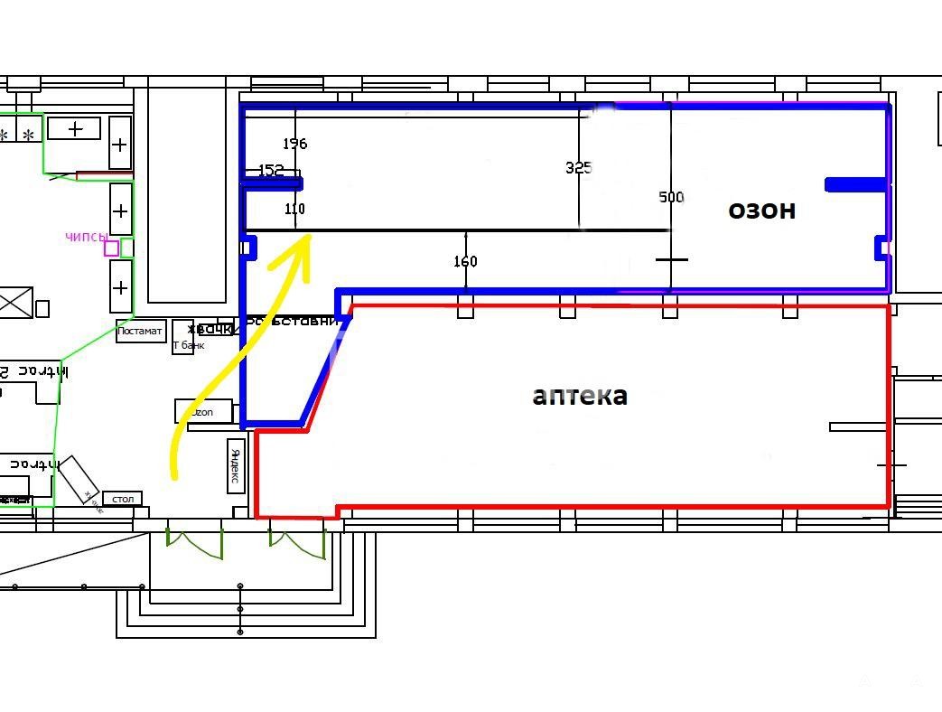 Сдается торговое помещение на красной линии, по соседству с продуктовым магазином под Ваш бизнес: пункт выдачи заказов, торговля, офис продаж, клиентский офис, студия красоты, парикмахерская и т.д