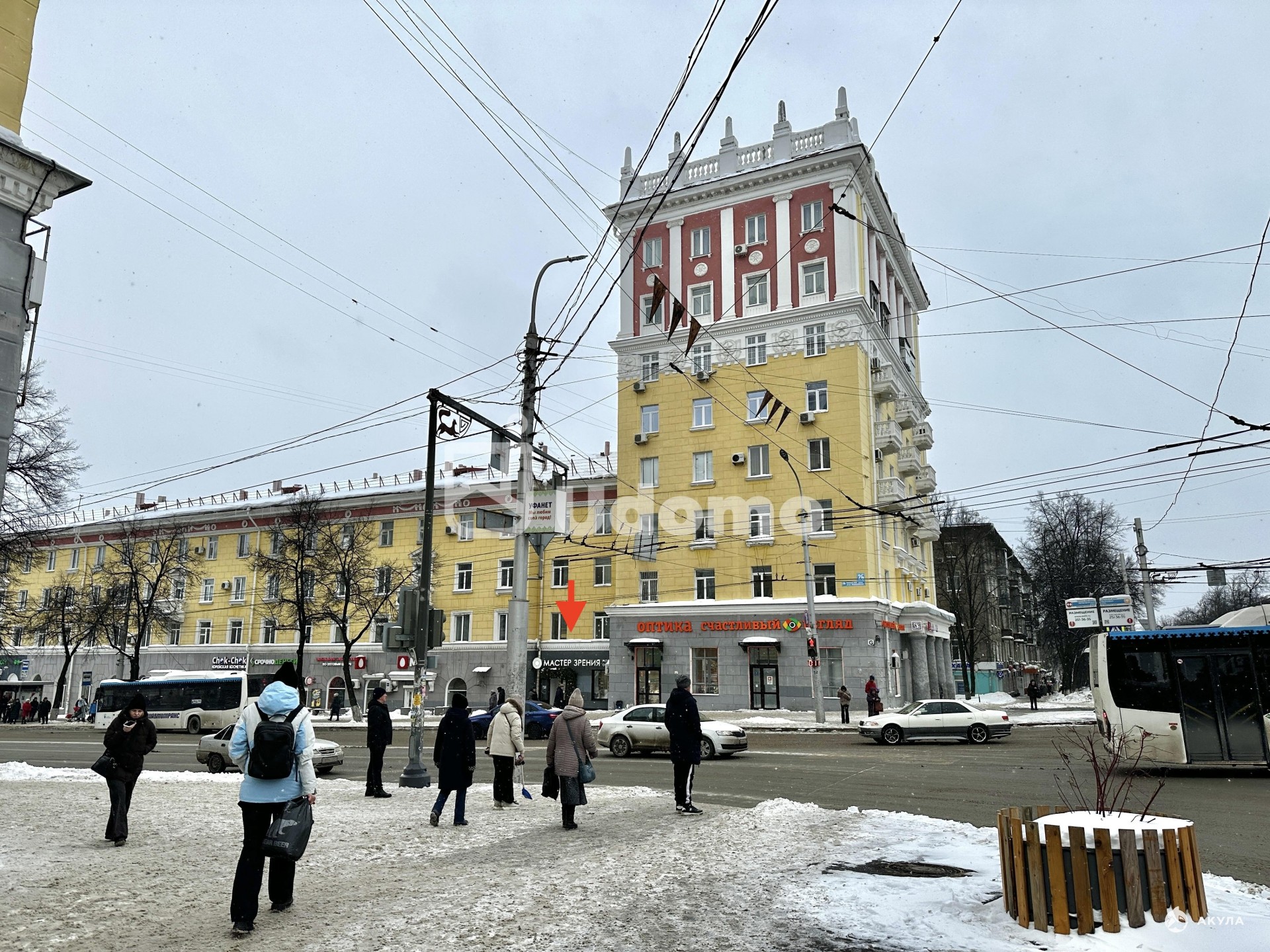 Красная линия, удобный доступ для пешеходов и автотранспорта. Наличие парковки для клиентов. Близость к остановкам общественного транспорта.