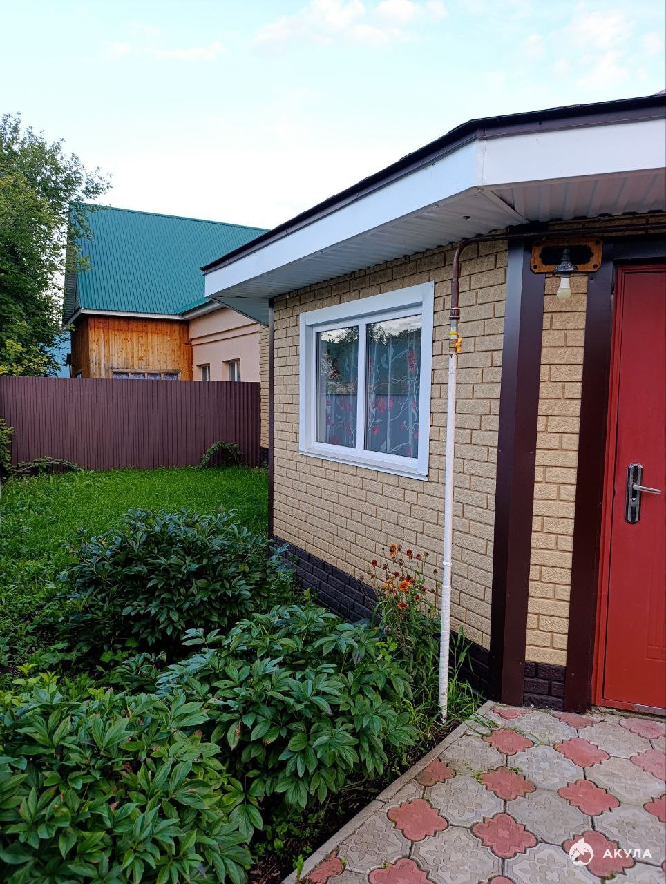 Дом кирпичный, утеплен и обшит Стоун-Хаус ПВХ. Есть возможность доделать второй этаж, но у нас не было такой необходимости. Окна все в доме, в котельной и в гараже пластиковые стеклопакеты. Дом полностью огорожен забором профнастил, трубы. Калитка на замке.