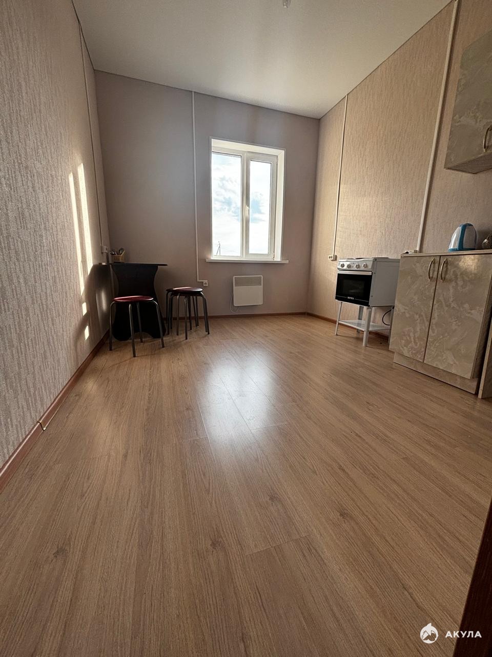 Выполнен качественный современный ремонт: ровные стены, новые окна, практичный и стильный пол.