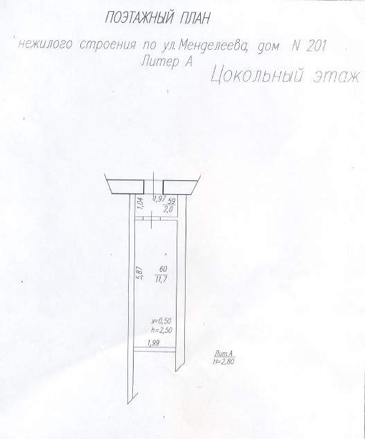 Нежилые помещения цокольного этажа девятиэтажного жилого здания. Кадастровый номер 02: 55: 010714: 155. Назначение нежилое. Площадь объекта 13, 7 кв.м. Этаж / этажность-цоколь / 9. Обременения (ограничения) не зарегистрировано. Муниципальная собственность. Записи в Едином государственном реестре прав на недвижимость № 02-04-01/300/2009-496 от 26.11.2009. Год постройки: 1973, материал стен: кирпич, высота помещений 2, 5м. , наличие коммуникаций: центральное отопление, электроснабжение. Особые отметки: Покупатель Объекта обязан обеспечивать свободный доступ соответствующим службам в целях ремонта коммунальных, инженерных, электрических, других линий и сетей. Адрес: Республика Башкортостан, г. Уфа, Октябрьский район, ул. Менделеева, 201.
