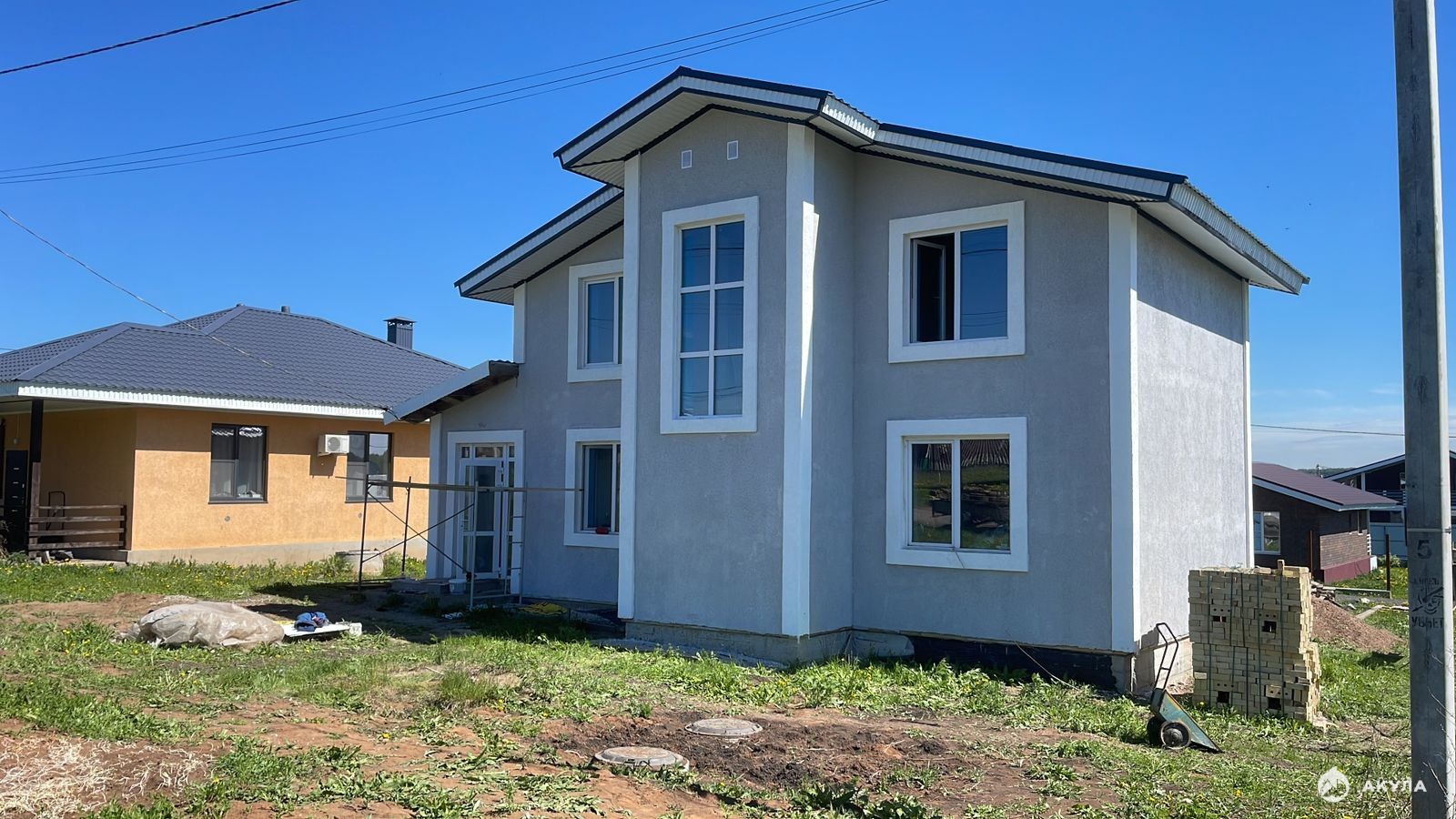 По всему дому полностью сделана разводка электропроводов, установлены розетки , выключатели и т.д. Электричество в доме 220Вт, 380Вт.