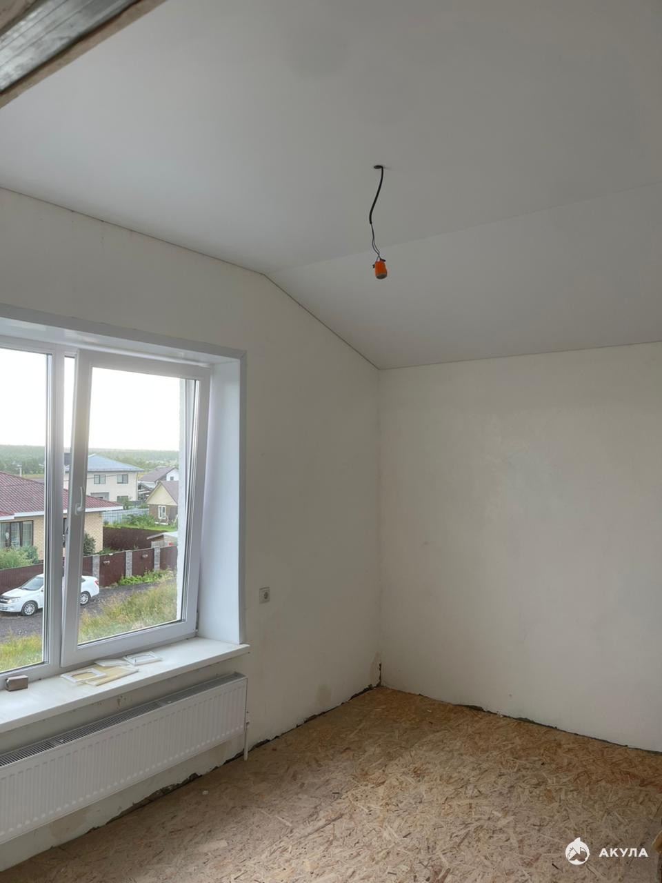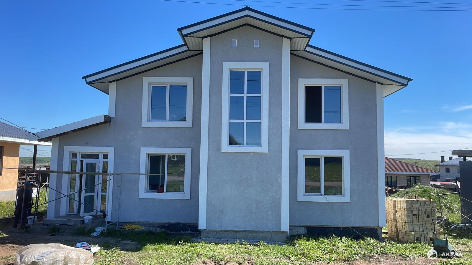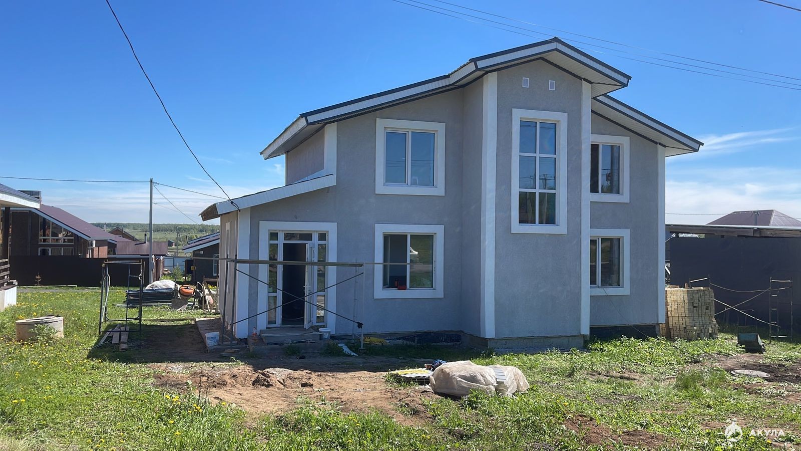 Стены везде оштукатурены по маякам , зашпаклеваны, готовы для поклейки обоев или покраски. На первом этаже полусухая стяжка с теплыми полами.