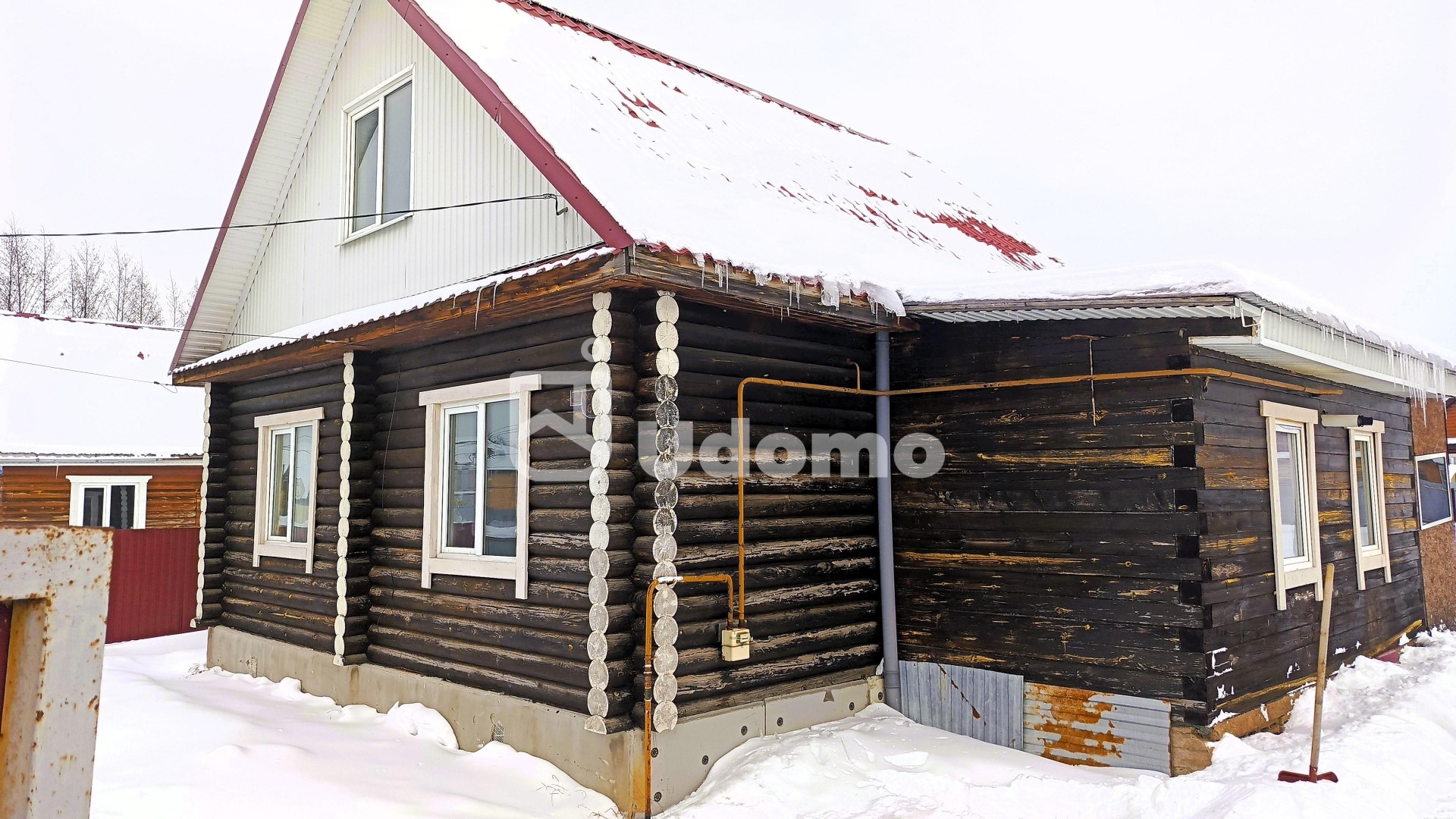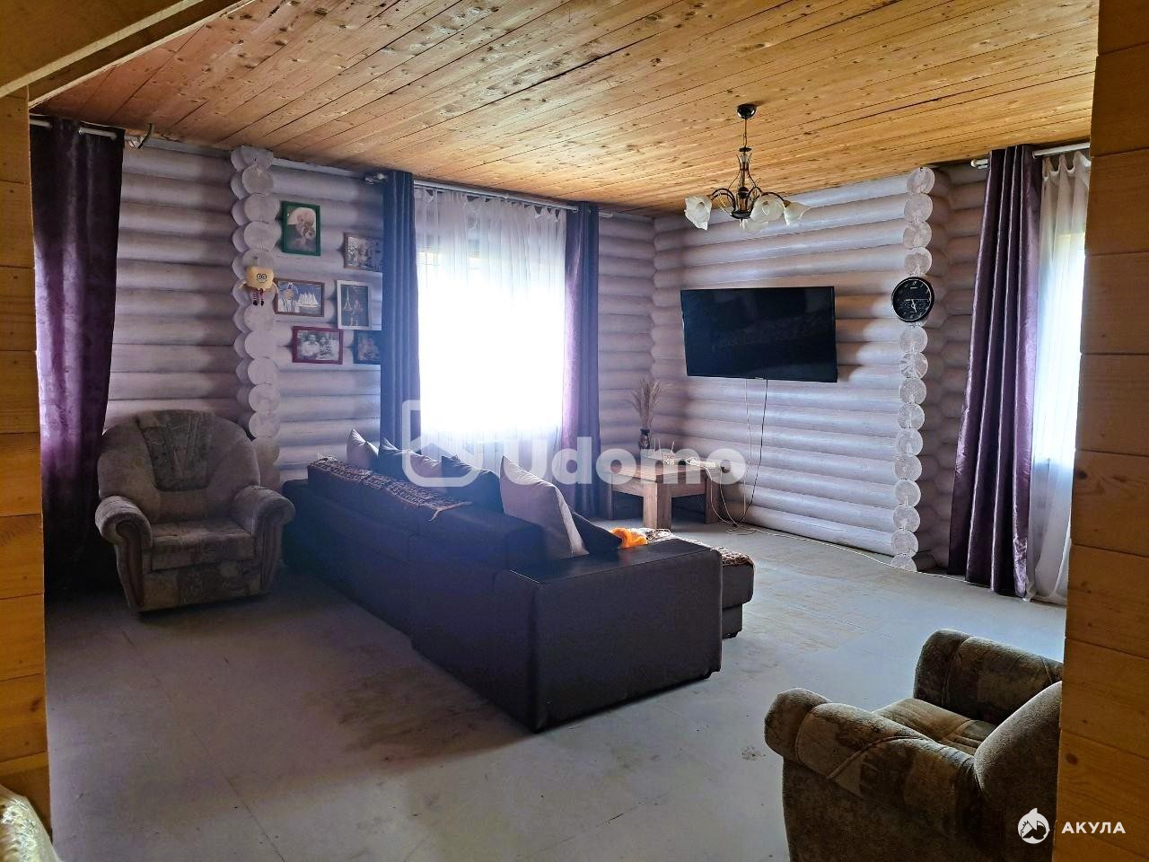 Дом построен из калиброванного бревна, что придаёт ему особый шарм, экологичность и тёплую атмосферу.