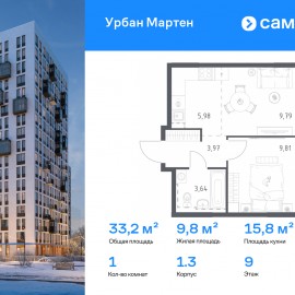 Строим кварталы для жизни с заботой о будущем. Предлагается 1-комнатная квартира комфорт-класса 33, 19 кв.м в корпусе 1.3 на 9 этаже, в ЖК «Урбан Мартен» Квартира с предчистовой отделкой. Доступность дополнительных опций уточняйте у застройщика. Приобрести квартиру возможно по...