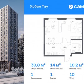 Строим кварталы для жизни с заботой о будущем. Предлагается 1-комнатная квартира комфорт-класса 39, 75 кв.м в корпусе 1 на 10 этаже, в ЖК «Урбан Тау» Квартира с предчистовой отделкой. Доступность дополнительных опций уточняйте у застройщика. Приобрести квартиру возможно по...