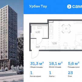 Строим кварталы для жизни с заботой о будущем. Предлагается 1-комнатная квартира комфорт-класса 31, 3 кв.м в корпусе 1 на 23 этаже, в ЖК «Урбан Тау» Квартира с предчистовой отделкой. Доступность дополнительных опций уточняйте у застройщика. Приобрести квартиру возможно по...