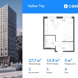 Строим кварталы для жизни с заботой о будущем. Предлагается 1-комнатная квартира комфорт-класса 27, 67 кв.м в корпусе 1 на 4 этаже, в ЖК «Урбан Тау» Квартира с чистовой отделкой. Доступность дополнительных опций уточняйте у застройщика. Приобрести квартиру возможно по...