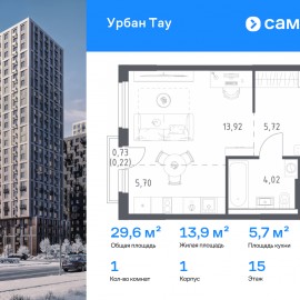 Строим кварталы для жизни с заботой о будущем. Предлагается 1-комнатная квартира комфорт-класса 29, 58 кв.м в корпусе 1 на 15 этаже, в ЖК «Урбан Тау» Квартира с предчистовой отделкой. Доступность дополнительных опций уточняйте у застройщика. Приобрести квартиру возможно по...