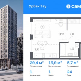 Строим кварталы для жизни с заботой о будущем. Предлагается 1-комнатная квартира комфорт-класса 29, 36 кв.м в корпусе 1 на 24 этаже, в ЖК «Урбан Тау» Квартира с предчистовой отделкой. Доступность дополнительных опций уточняйте у застройщика. Приобрести квартиру возможно по...