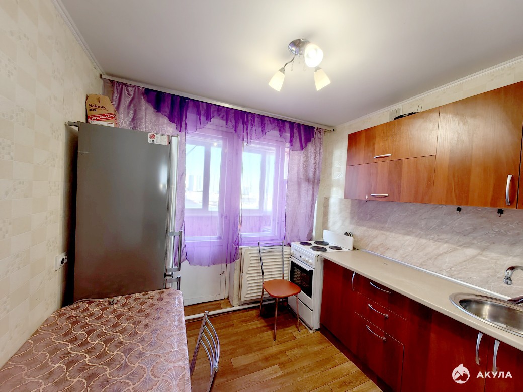 Удобная планировка квартиры, просторный зал 19 кв.м, кухня 8 кв.м, санузел 4 кв.м. В квартире сделан хороший ремонт, стены выровнены, наклеены красивые обои, на полу качественный линолеум. Входная дверь металлическая, все окна пластиковые. В санузле и ванной комнате выложен кафель.