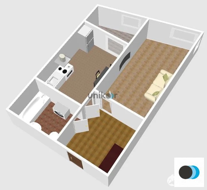 Отличная планировка: кухня 8, 9 кв.м, жилая площадь 12, 3 кв.м, просторная прихожая 6, 9 кв.мсанузел совмещен 3, 9 кв.м.