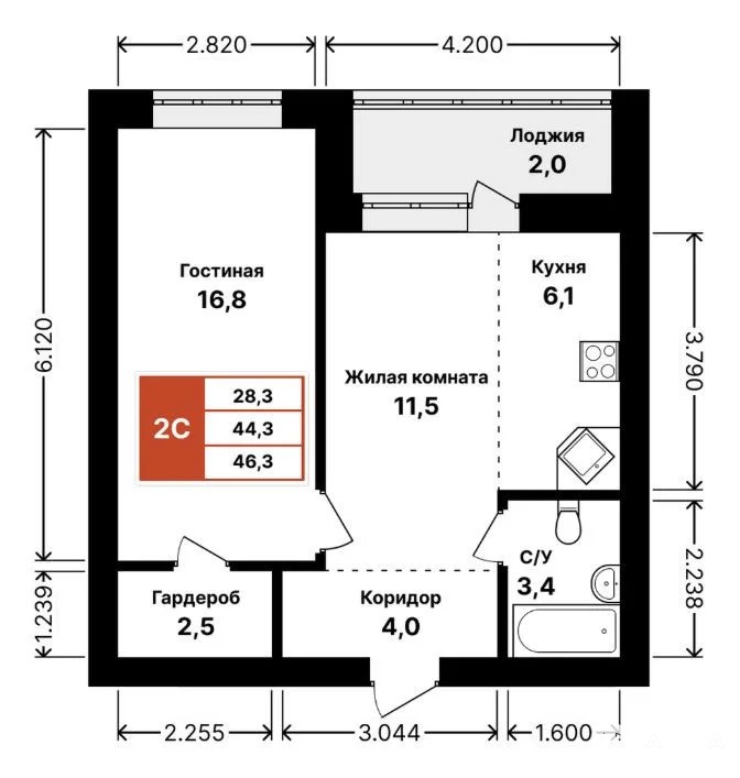 2-комнатная квартира 46 м с предчистовой отделкой — идеальный старт для молодой семьи, пары или инвестора.