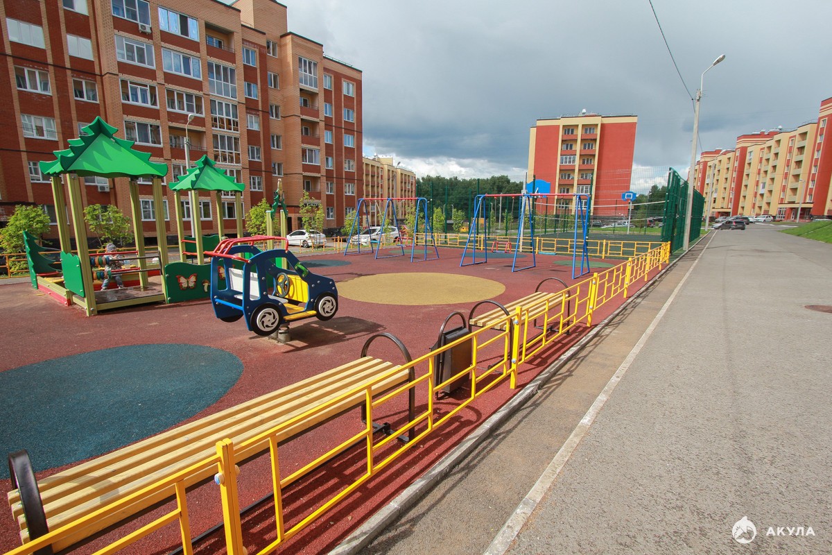 Достаточно благоустроенный двор, есть современная детская площадка, закрытая территория. Места общего пользования и придомовая территория продумана, и сделана на высшем уровне. Новая современная школа и садик, в 5 минутах ходьбы от дома.