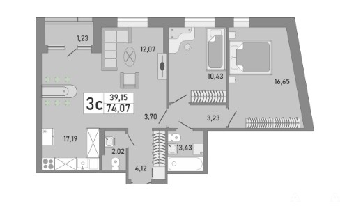 - 74 м²