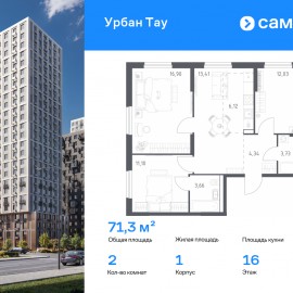 Строим кварталы для жизни с заботой о будущем. Предлагается 3-комнатная квартира комфорт-класса 71, 29 кв.м в корпусе 1 на 16 этаже, в ЖК «Урбан Тау» Квартира без отделки. Доступность опции «отделка» и возможность комплектации мебелью и декором уточняйте у...