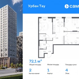 Строим кварталы для жизни с заботой о будущем. Предлагается 3-комнатная квартира комфорт-класса 72, 11 кв.м в корпусе 1 на 4 этаже, в ЖК «Урбан Тау» Квартира с предчистовой отделкой. Доступность дополнительных опций уточняйте у застройщика. Приобрести квартиру возможно по...