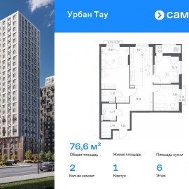 Строим кварталы для жизни с заботой о будущем. Предлагается 3-комнатная квартира комфорт-класса 76, 6 кв.м в корпусе 1 на 6 этаже, в ЖК «Урбан Тау» Квартира с предчистовой отделкой. Доступность дополнительных опций уточняйте у застройщика. Приобрести квартиру возможно по...