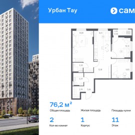 Строим кварталы для жизни с заботой о будущем. Предлагается 3-комнатная квартира комфорт-класса 76, 16 кв.м в корпусе 1 на 11 этаже, в ЖК «Урбан Тау» Квартира с предчистовой отделкой. Доступность дополнительных опций уточняйте у застройщика. Приобрести квартиру возможно по...