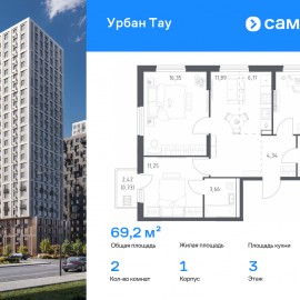 Строим кварталы для жизни с заботой о будущем. Предлагается 3-комнатная квартира комфорт-класса 69, 15 кв.м в корпусе 1 на 3 этаже, в ЖК «Урбан Тау» Квартира без отделки. Доступность опции «отделка» и возможность комплектации мебелью и декором уточняйте у...