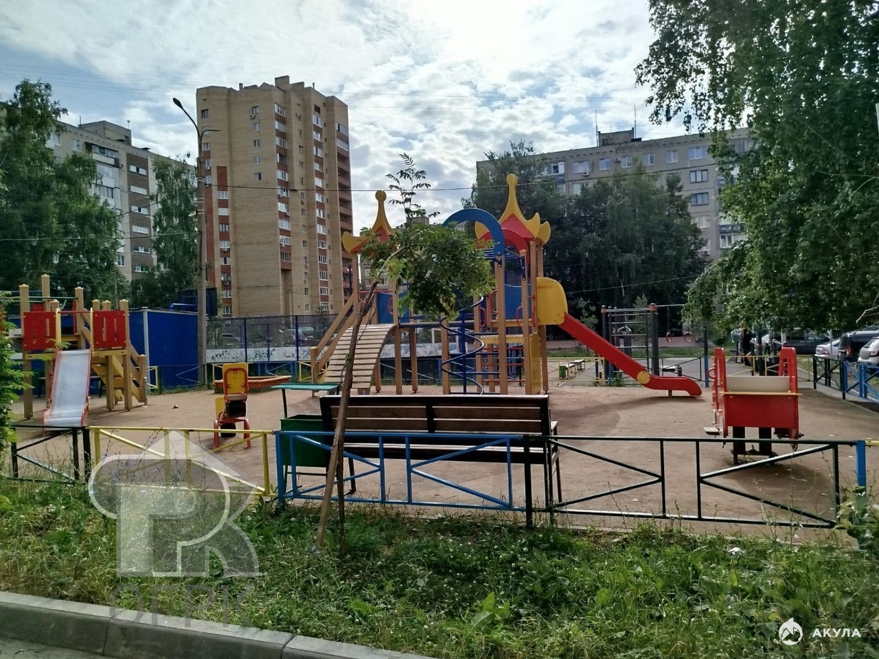 Во дворе детская и спортивная площадки.