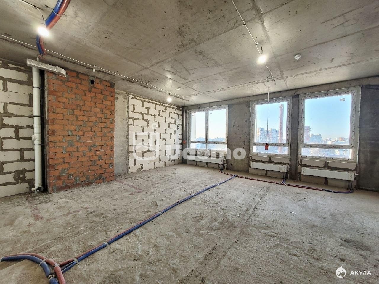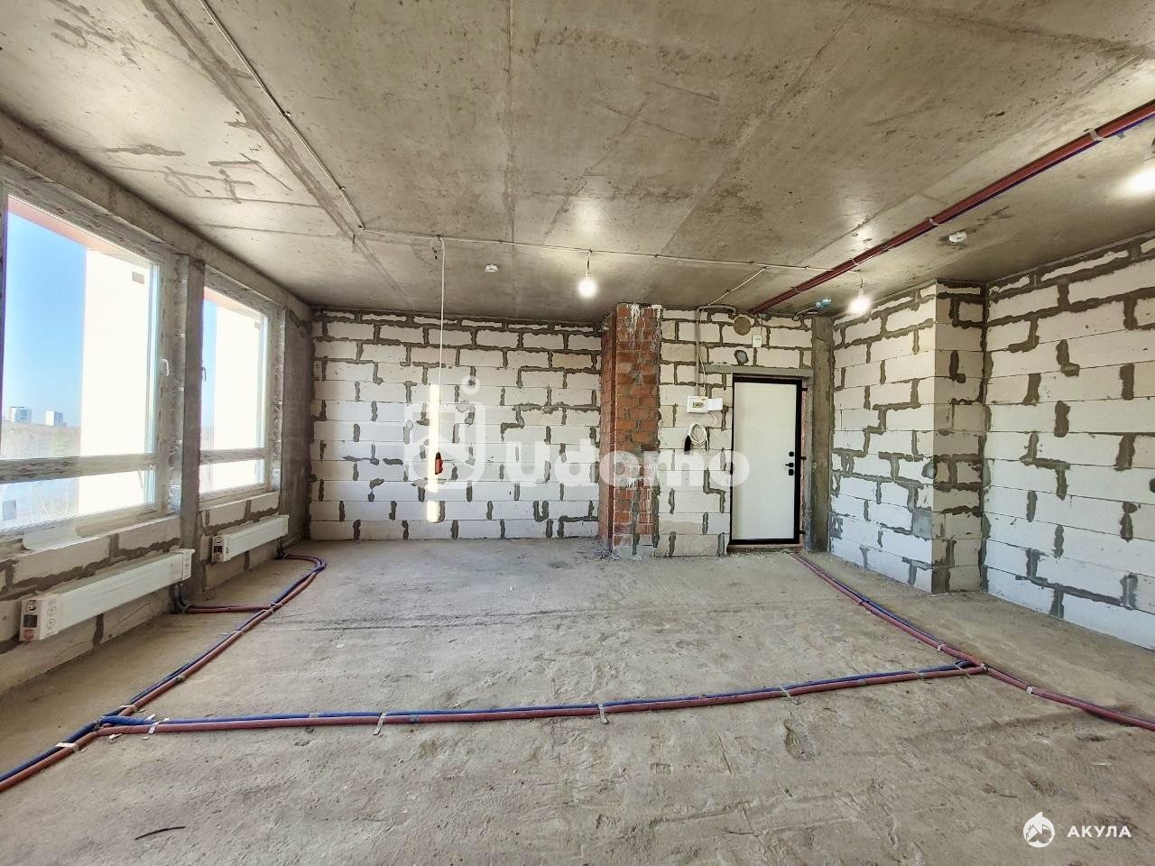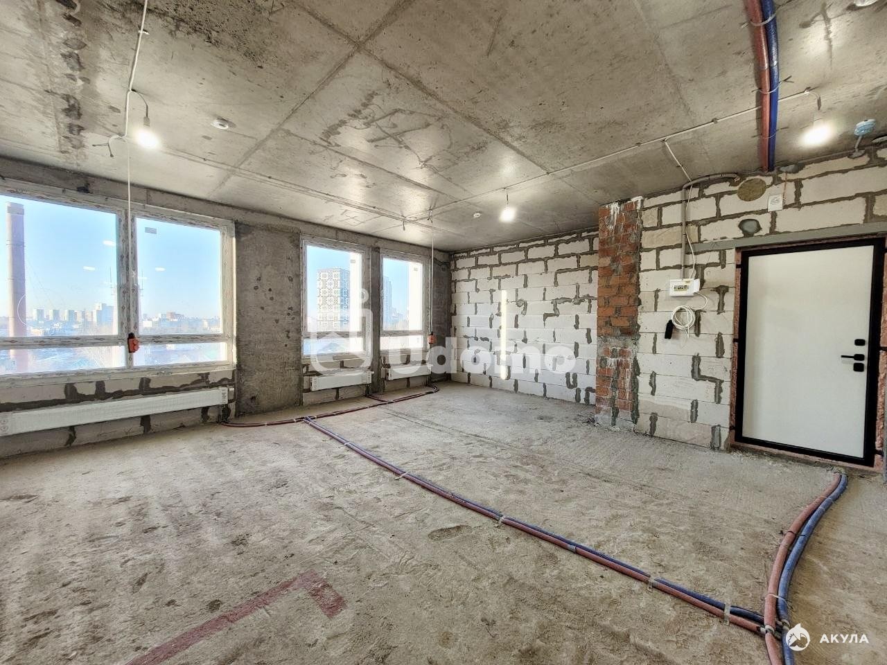 ☑️ В квартире выполнена частичная разводка электричества, на полу - лучевая разводка отопления, есть вывод под кондиционер и установлена корзина. Окна смотрят во двор, частично видно на лес.