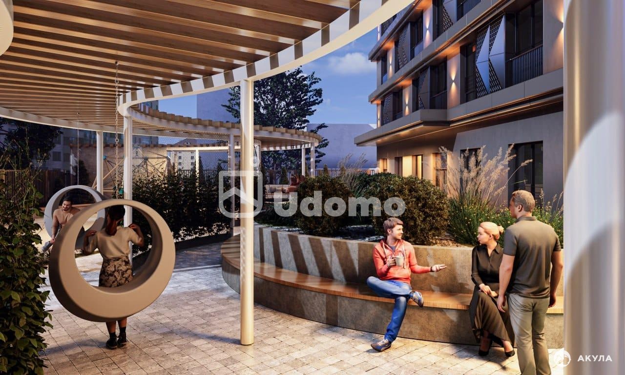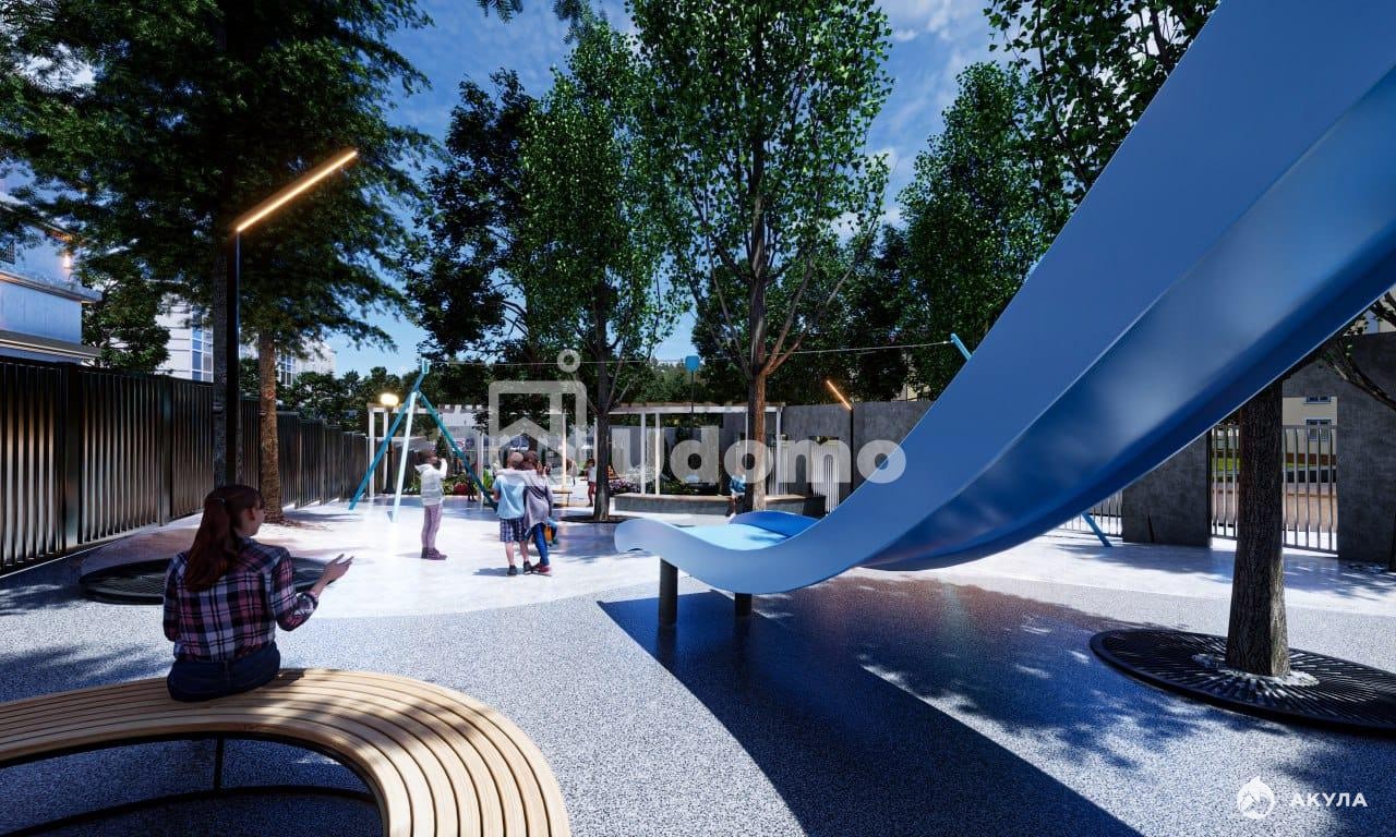☑️ Территорией двора предусмотрены детские и спортивные пространства, лаундж-зоны, тренажеры, малые игровые архитектурные формы. Двор закрытый, без машин, есть подземный паркинг. Коворкинг зона. Уборная на 1 этаже, лапомойка для животных.